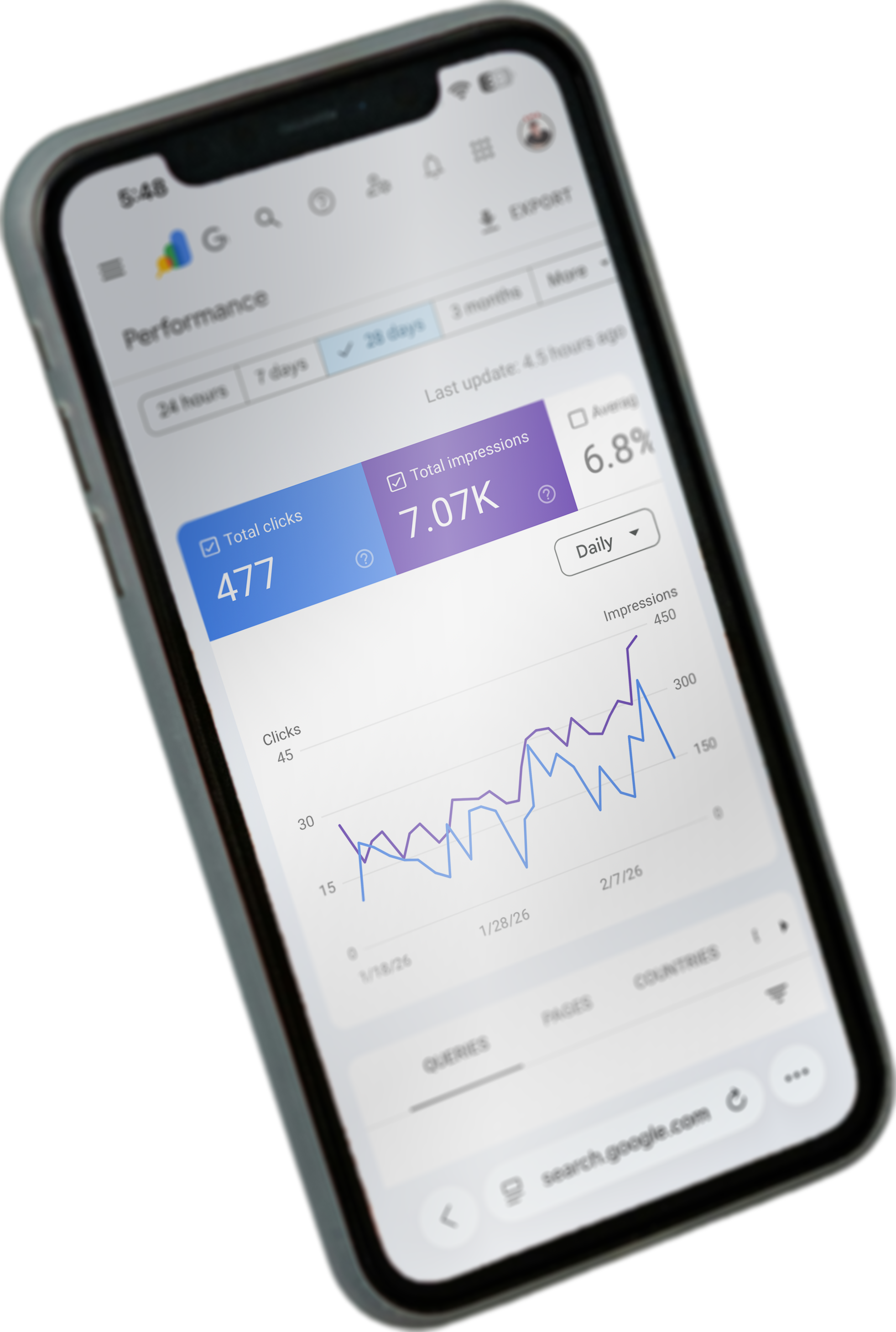 We map the searches that matter in your market and build pages to match them. Not a digital brochure. A structure Google can understand and customers can act on: architecture, page planning, copy, titles and meta, internal linking, and technical cleanup.